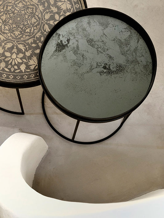 Round Aged Mirror Tray