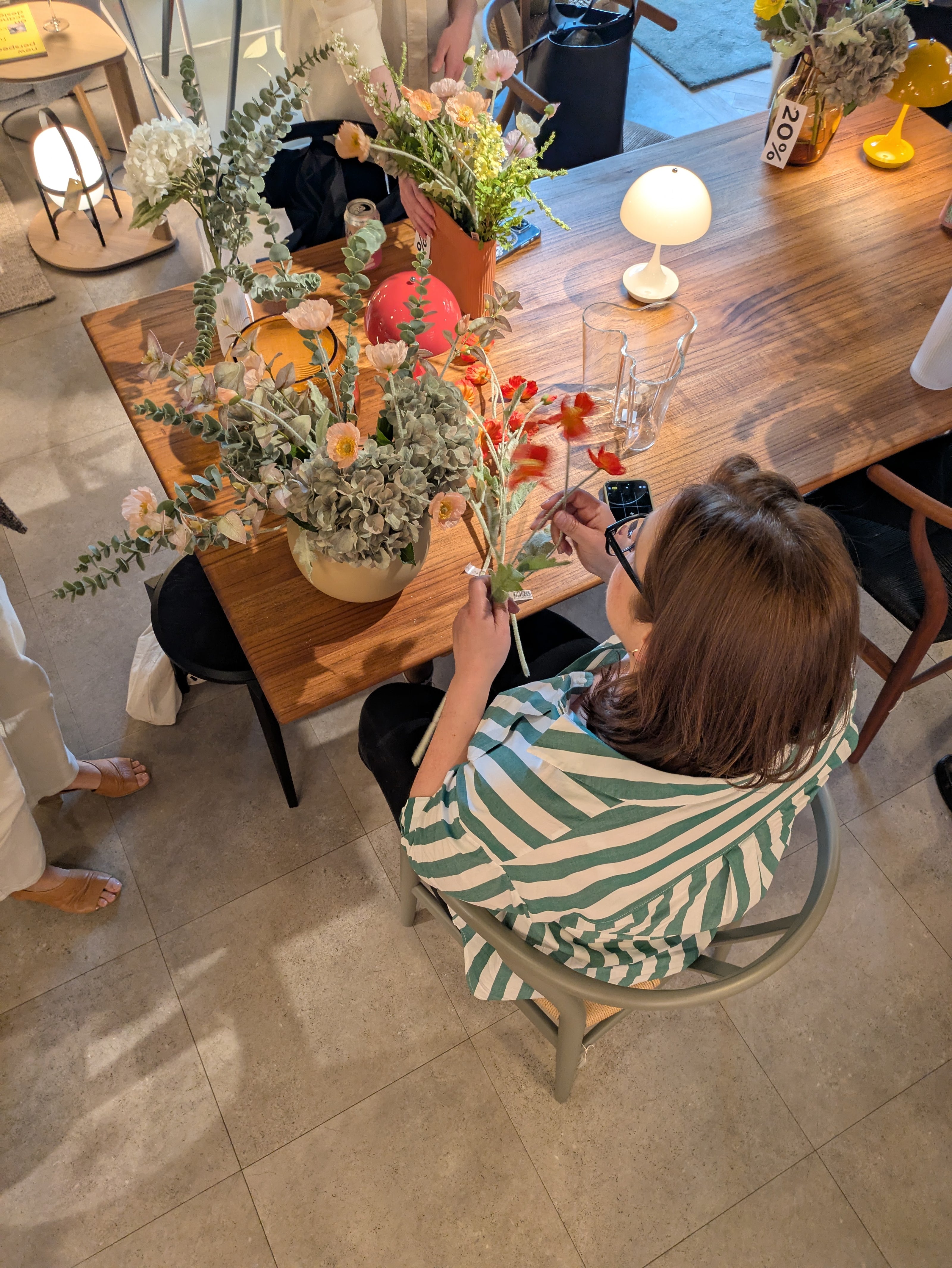 kicked off the workshop part of the evening with a styling demonstration, he shared loads of great advice on how to work with faux flowers, from layering techniques to choosing shape, form and colours. We all learned clever tips and tricks for creating arrangements that feel fresh, elevated and effortlessly real (no watering required!).