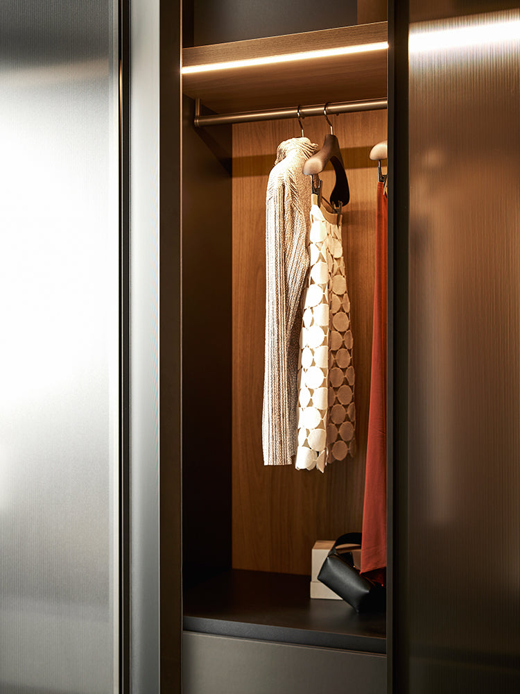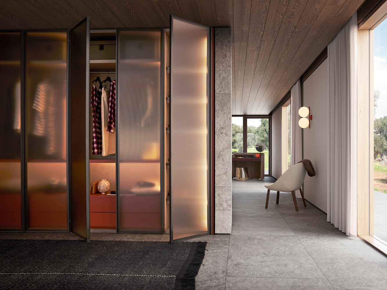 To create beautiful, custom feeling we work with a lovely brand, Pianca. Custom-made wardrobes with maximum design freedom: multiple finishes, 2 depths, 3 heights, 7 widths, 3 opening options (hinged, sliding and flush), 11 types of smooth, decorated and framed doors.