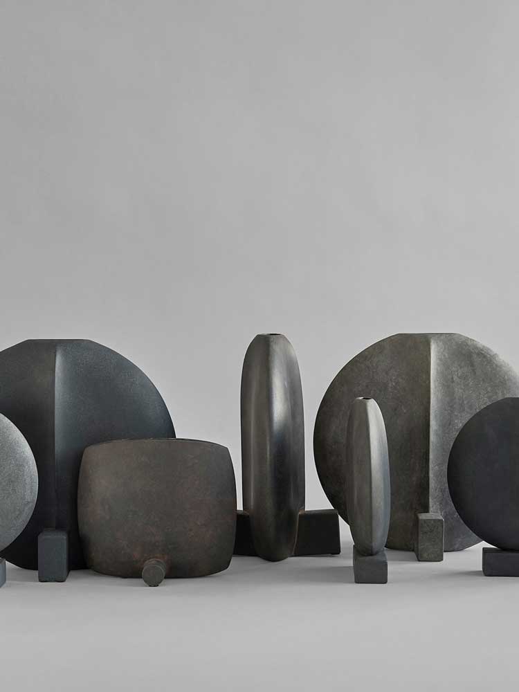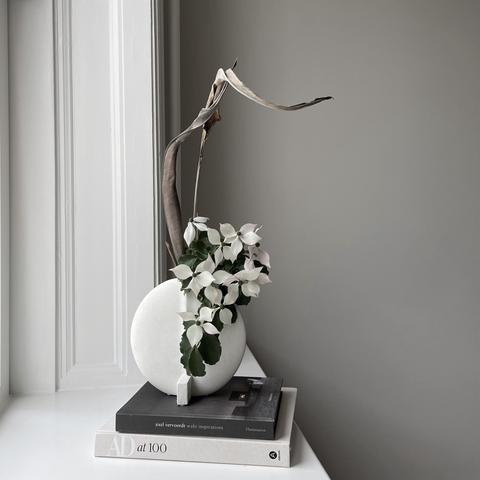 The Guggenheim Vase is a based on archetypal geometry. The transition between merged geometry, sharp lines and thin silhouettes creates decorative optical illusions. The texture of the handmade surface beautifully catches the light, and becomes an artistic object in the space