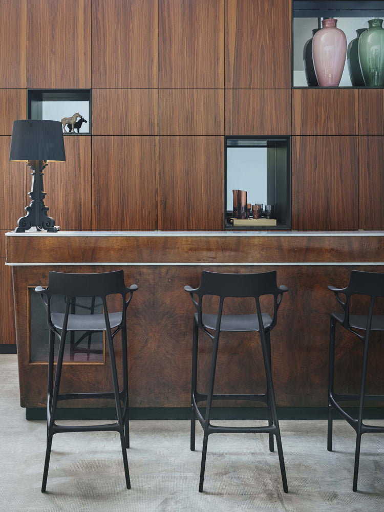 A.I. is the chair created for the first time ever using recycled material, in which aesthetics and structural requirements remain unaltered, blending seamlessly with generative design. The added value of A.I. lies in the fact that it is the first product family conceived by Artificial Intelligence in response to input received from the designer (Philippe Starck) and the know-how of the company (Kartell).