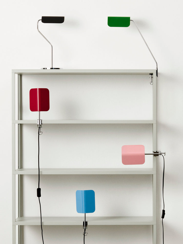 Taking cues from the classic Banker’s Light, British designer John Tree merged archetypal references with his contemporary, colourful sensibility to create the Apex Clip Lamp. The folded steel shades create a peaked roofline silhouette, providing the inspiration behind the lamp’s name as well as offering a graphic contrast to the chrome-plated bases. The adjustable clip enables the lamp to be fixed to a wide variety of vertical and horizontal surfaces, while the colourful shade can rotate 360 degrees, allowing users to direct light to suit their needs. The Apex Clip Lamp offers a functional lighting solution for a multitude of spaces and uses, from an ambient light in a corner to a reading lamp over a sofa.