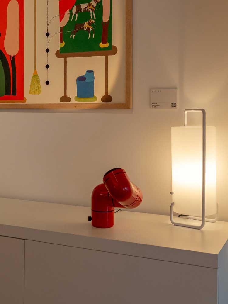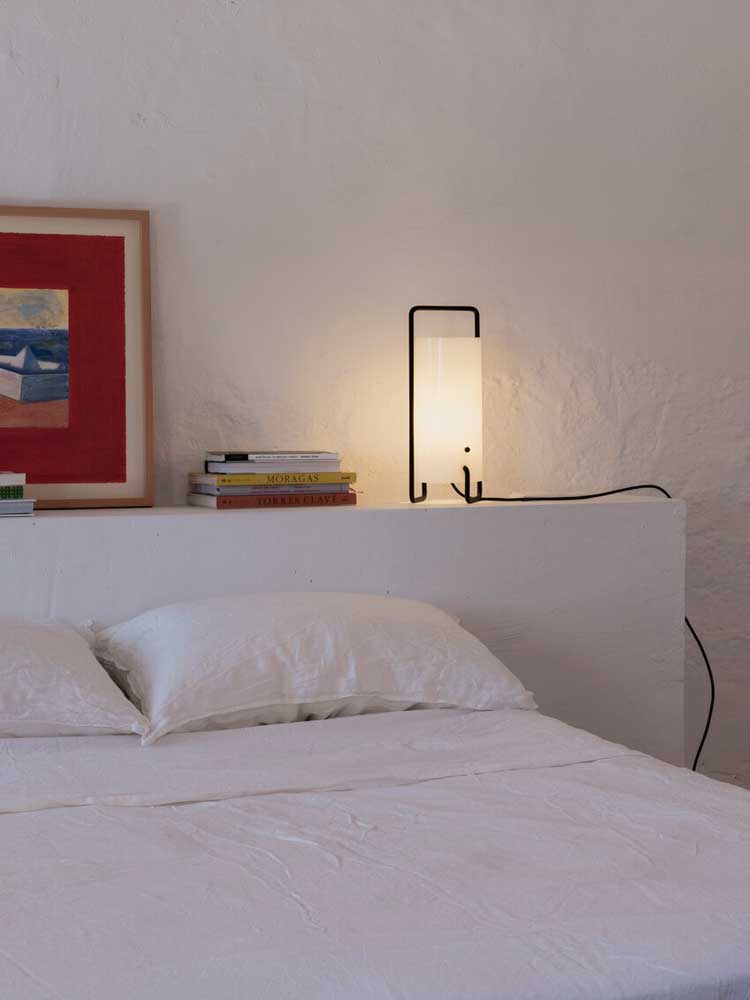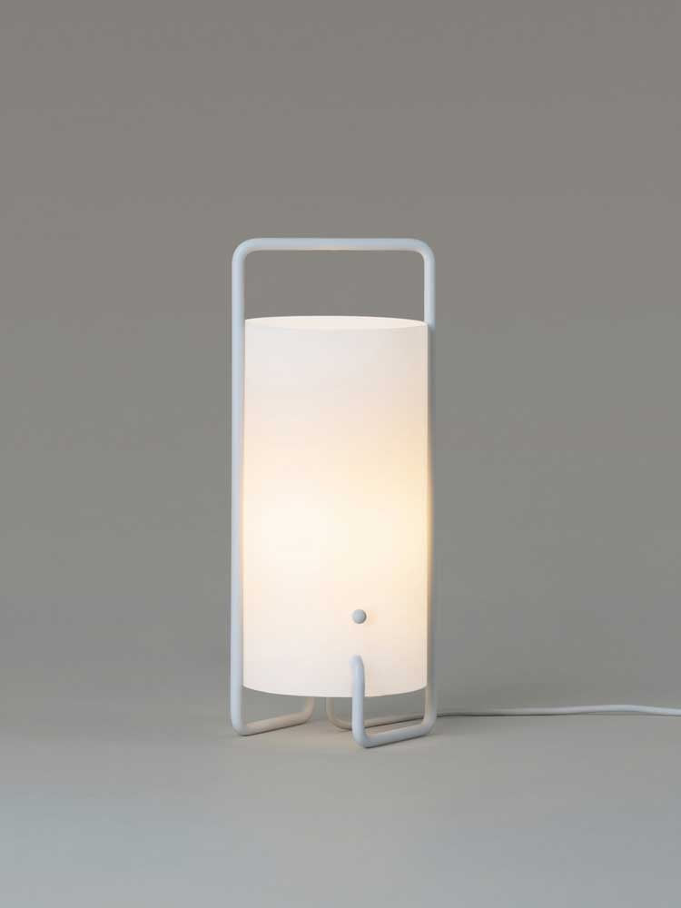 Asa is built of an ingenious, single, continuous tube structure which also defines the upper, handle-shaped structure for carrying. It has two colour versions: white or, in its original 1961 version, with black structure and switch. Three visible elements, structure, shade and switch, make up a beautifully-proportioned ensemble.