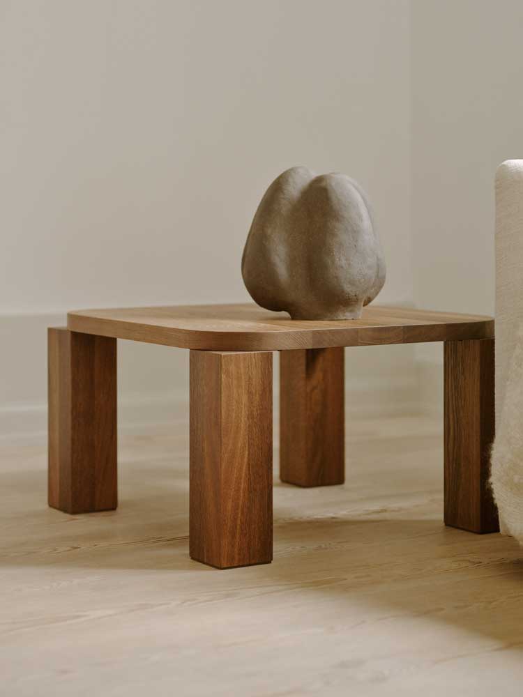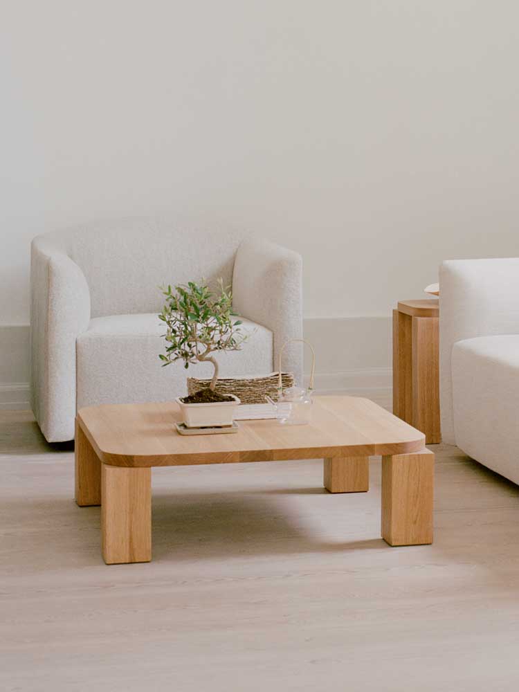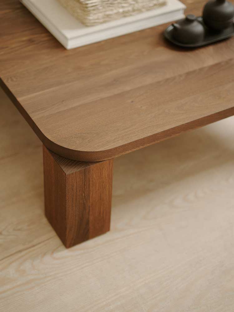 Named after the mythical Titan condemned to hold up the heavens on his shoulders, the solid legs of the Atlas table stand strongly as support for the spacious tabletop. The meeting and contrast between the legs and the tabletop is central to the design, where each element exaggerates the other giving the table its distinct presence and brutalist feel. For Atlas, John Astbury has taken inspiration from several influences in architectural history. There are references to porticoes and colonnades, but Atlas builds mainly on the archetypal post-and-lintel construction. Combined with simple geometry, the circle and the square, it is the primary archetypes that together create the table’s character and composition.