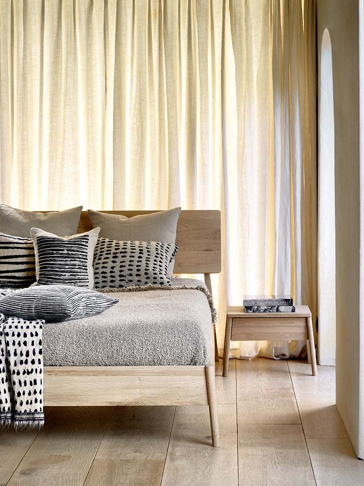 The name 'Air Bed' says it all: the idea was to add softness, roundness and overall lightness to the usual concept of a bed. Ethnicraft’s Air bed in solid oak manages to look sturdy yet light at the same time.