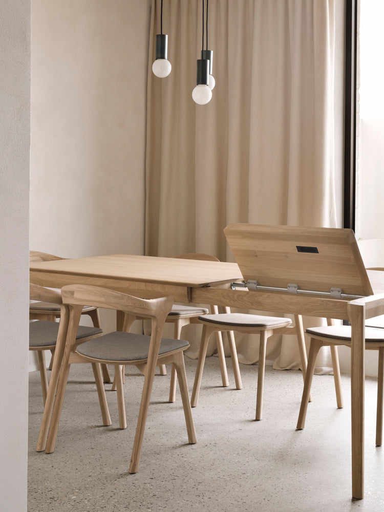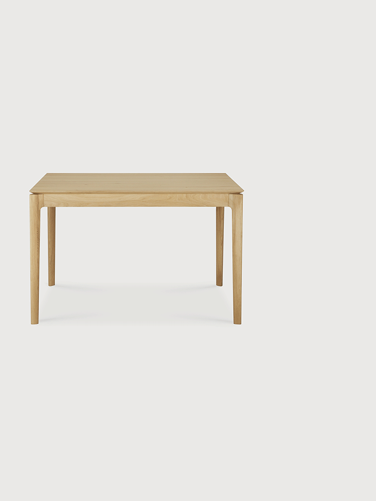 A solid wooden table with tapered edge and legs creating a light appearance whilst retaining a rigid and strong frame. Available in two oak colours, solid teak and a range of sizes it is suitable for many homes. Also available in extending versions it can be used either as a kitchen table or formal dining table.