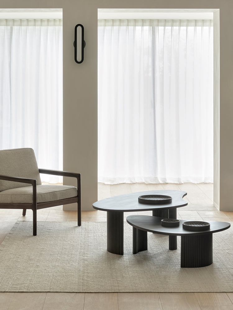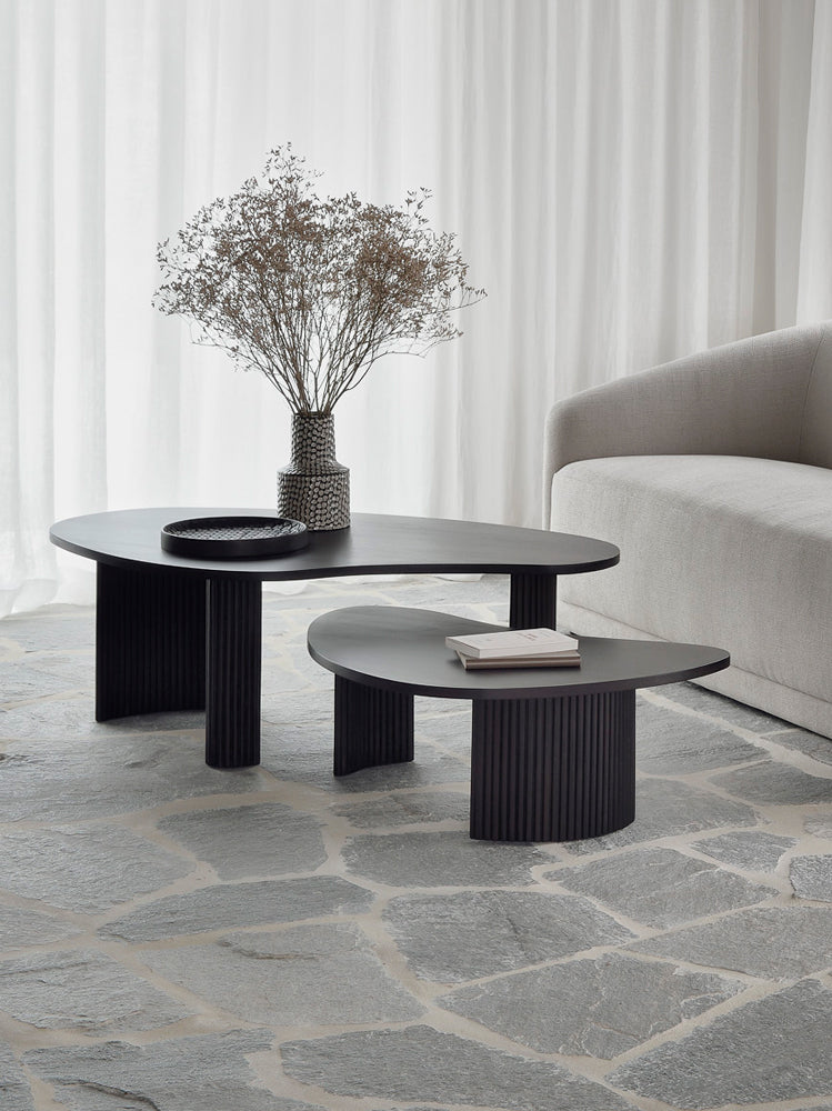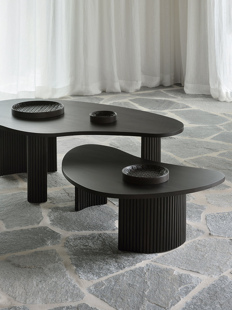 Playful, pebble shapes set on a beautiful, folded, base. The Boomerang coffee table is a fantastic and well-proportioned addition to any space. Configured with the two sizes together, or as a stand-alone, this design is sure to capture attention.