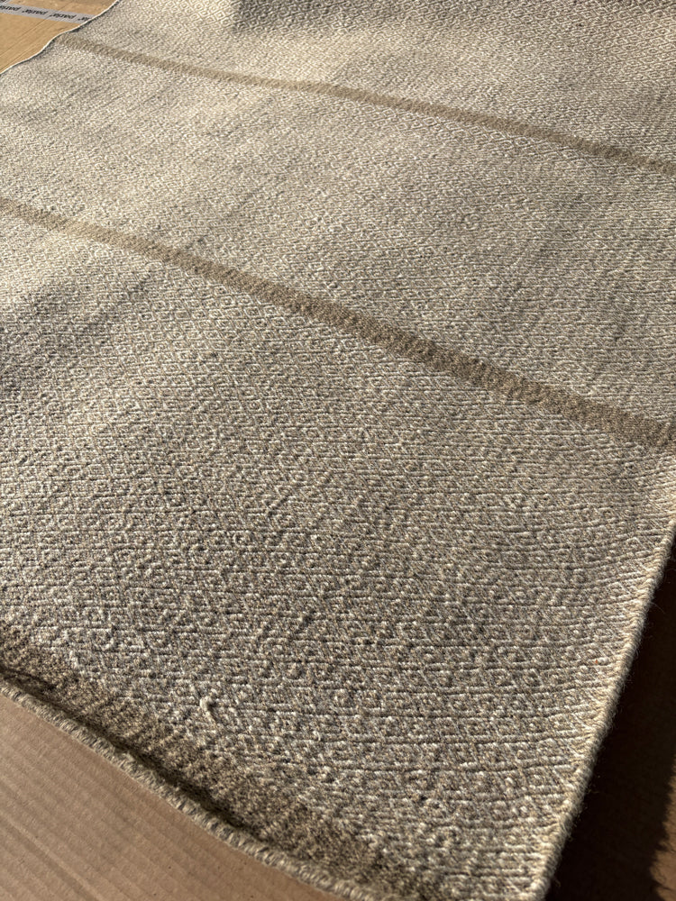 Hand-woven rug in New Zealand wool and linen on cotton warp, reversible
