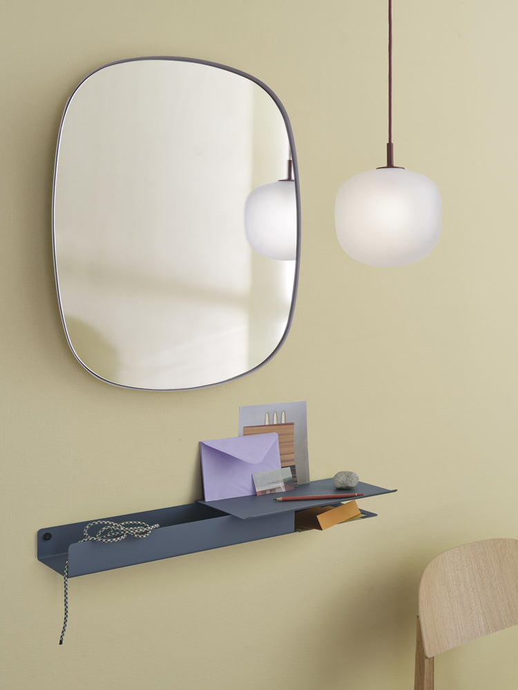 Made from powder coated steel frames with colored mirror glass, the Framed Mirrors is a gently artistic interpretation of the classic mirror. Though still functioning as reflecting glass, the colors, shapes and its ability to be arranged in groups gives the mirror a distinct character. The design comes in two sizes and four colors.