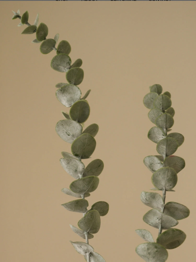 This Green Eucalyptus Five Leaves stem features small, rounded leaves in a muted green tone with a slightly textured surface. The leaves are arranged along slender green stems that measure 74 cm in height, with a matte finish and visible veining.