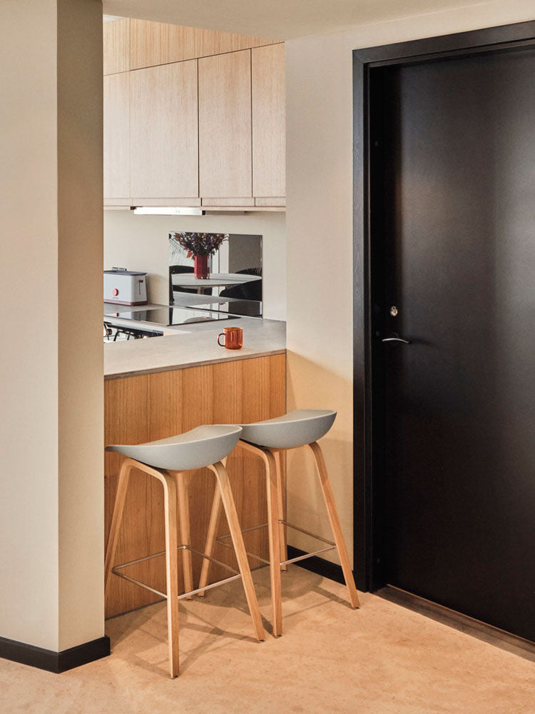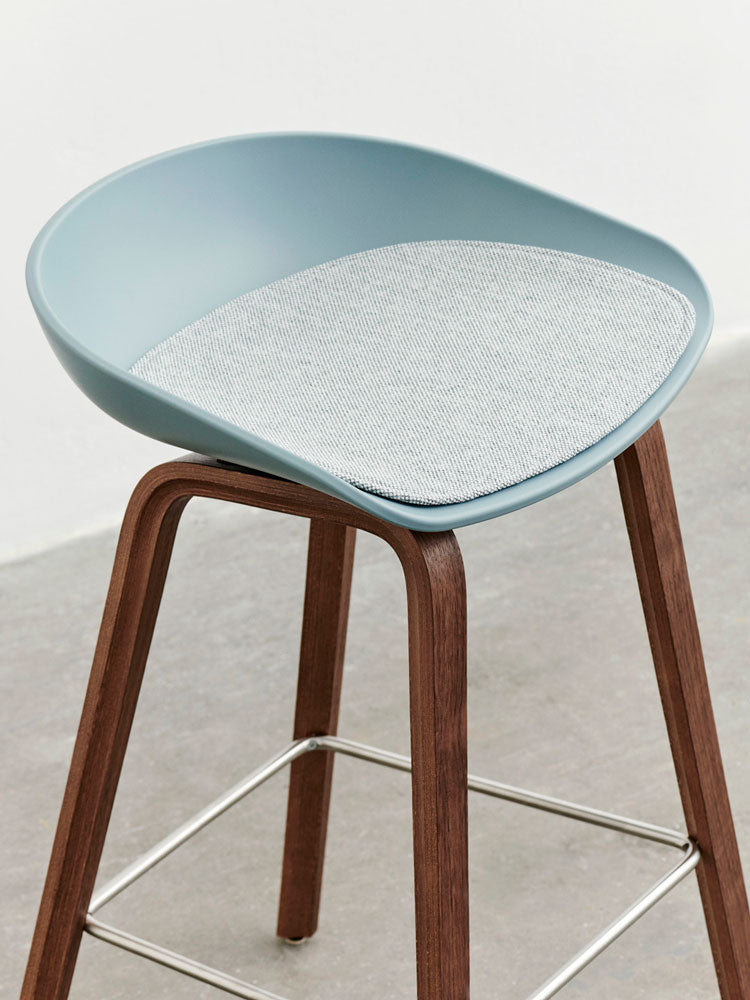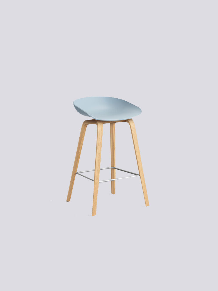 With a curved backrest and long, elegant wooden legs, AAS enjoys a simple yet strong visual presence that makes it ideal as a bar stool at home or in a public environment, as well as for informal meetings and meals. Available in two heights and in a range of wood finishes and colours.