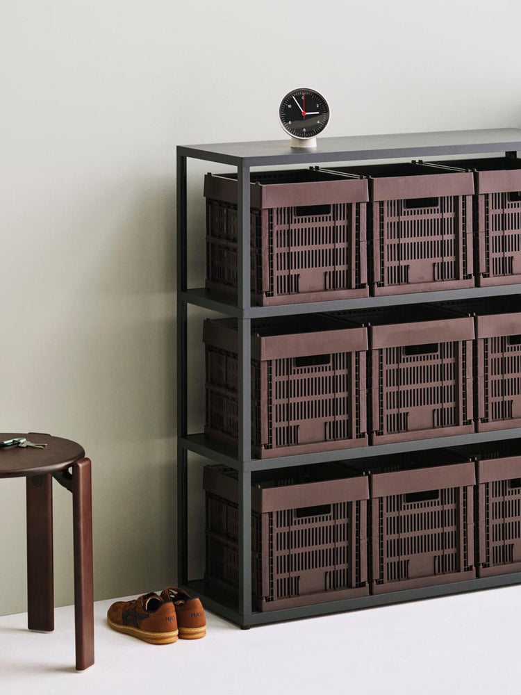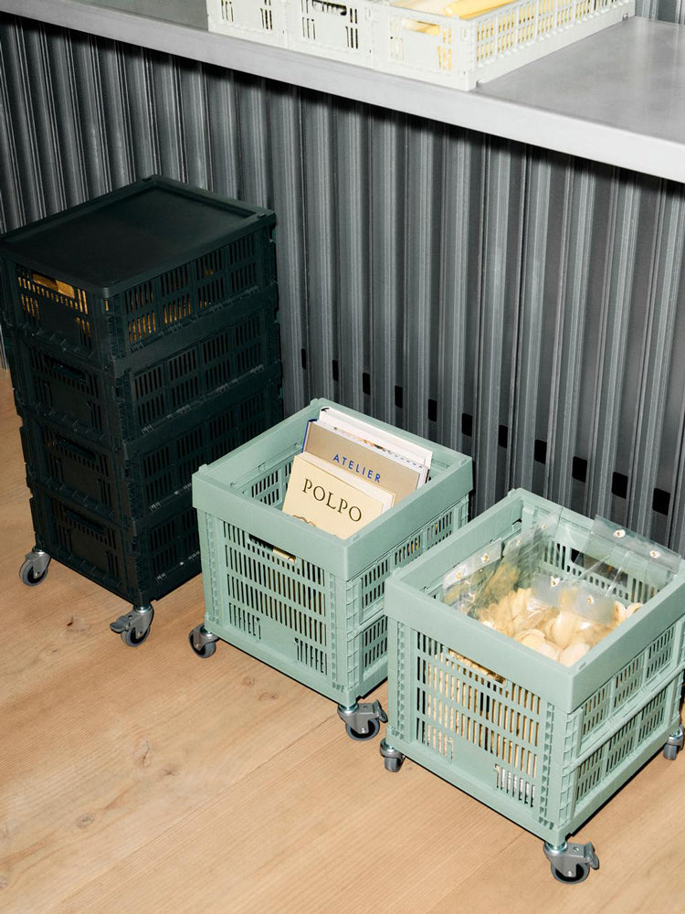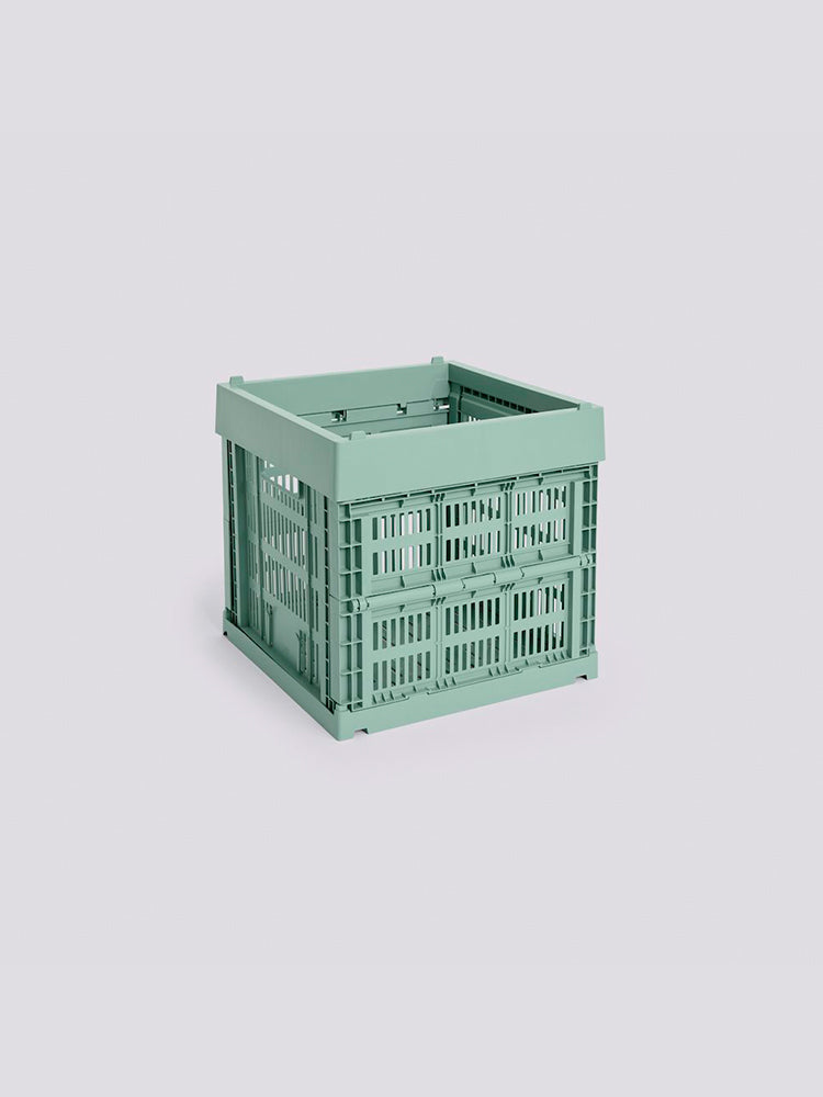 The New version of Colour Crate is here! Hay has created this series of multifunctional plastic storage boxes in a variety of different colours and sizes. Featuring a foldable and stackable design, these crates became a worldwide trend thanks to their practicality and colour palette. The crates are safe for using with food and are 100% recyclable.