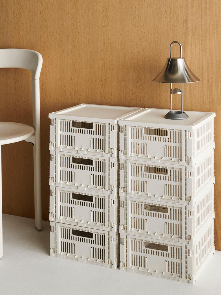 A useful lid that fits on top of HAY's Colour Crates, allowing for their contents to be neatly concealed, singularly or on top of a stack. Made from 100% recycled post-consumer plastic in colours that match the crates, the lids can be used to optimise storage in the bathroom, kitchen, and most other rooms in the home.