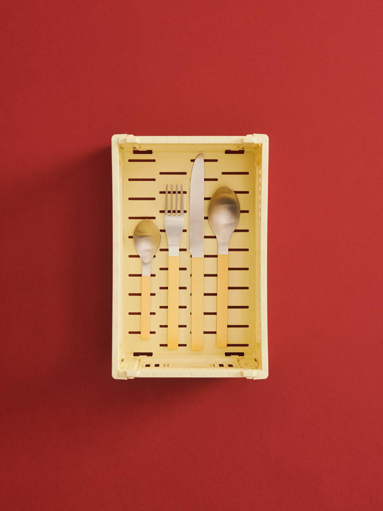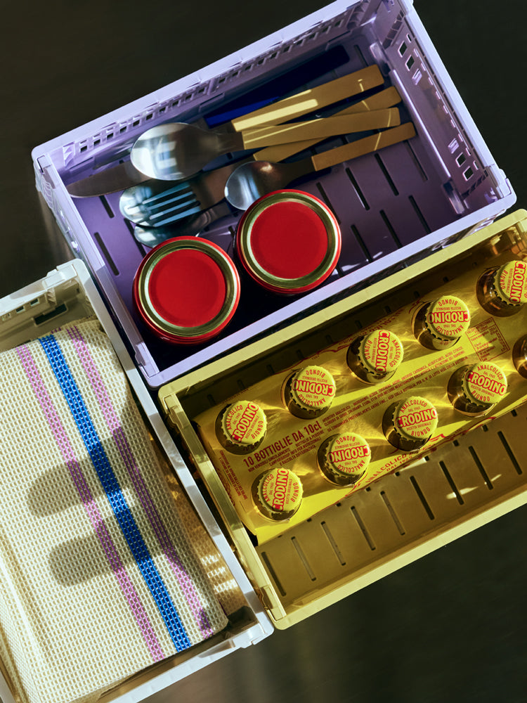 The New version of Colour Crate is here! Hay has created this series of multifunctional plastic storage boxes in a variety of different colours and sizes. Featuring a foldable and stackable design, these crates became a worldwide trend thanks to their practicality and colour palette. The crates are safe for using with food and are 100% recyclable.