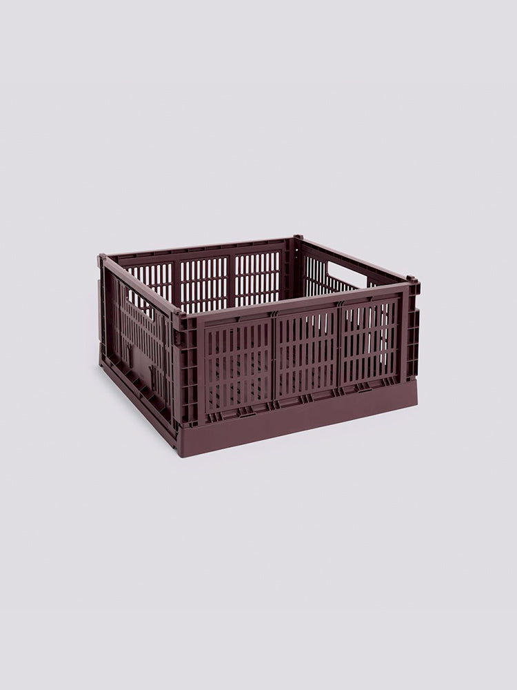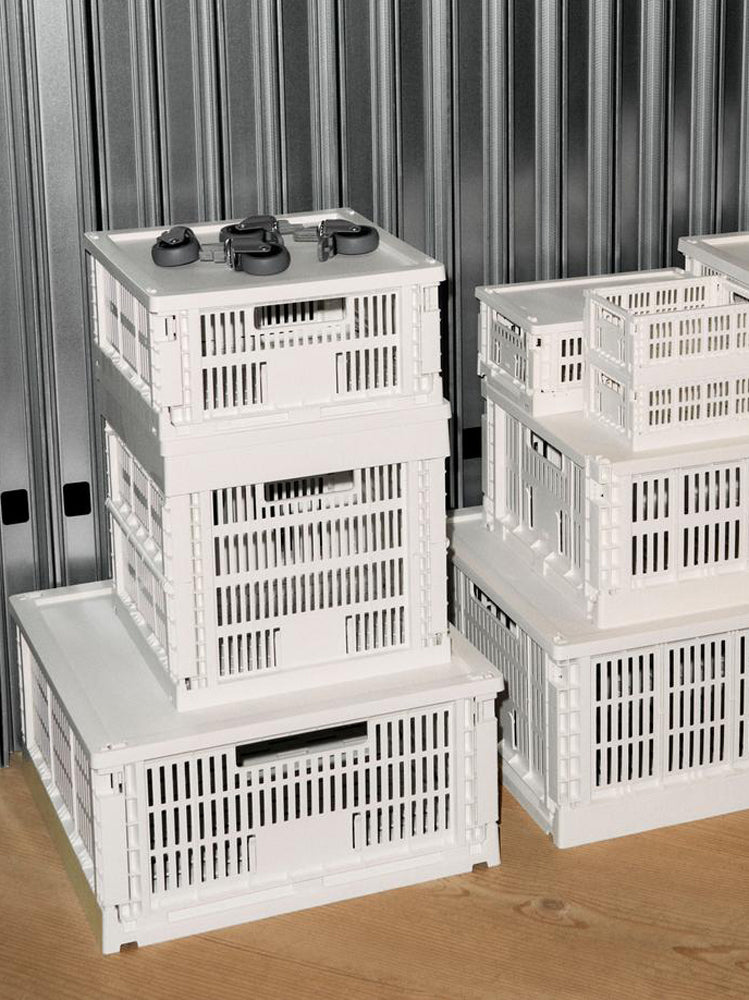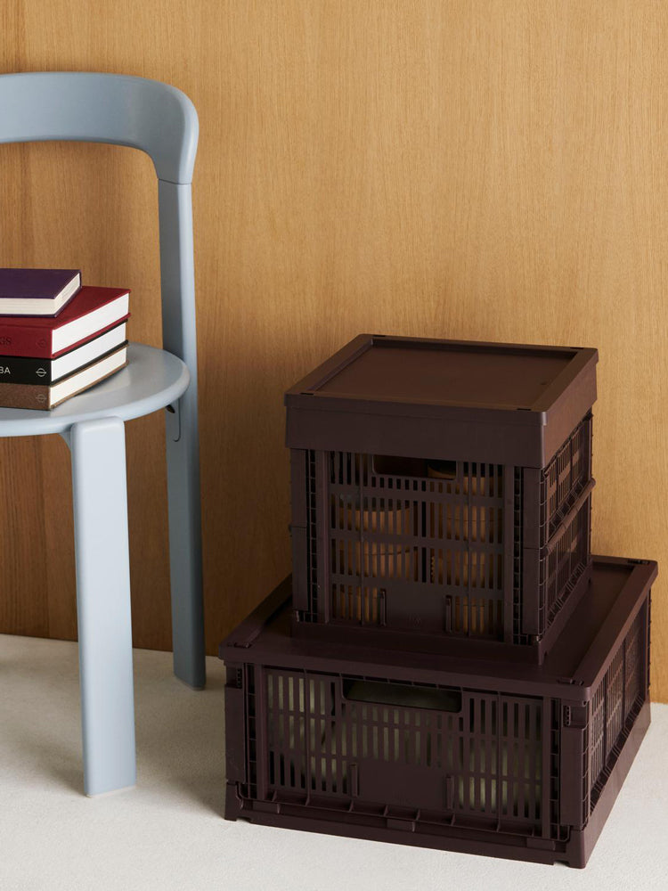 The New version of Colour Crate is here! Hay has created this series of multifunctional plastic storage boxes in a variety of different colours and sizes. Featuring a foldable and stackable design, these crates became a worldwide trend thanks to their practicality and colour palette. The crates are safe for using with food and are 100% recyclable.