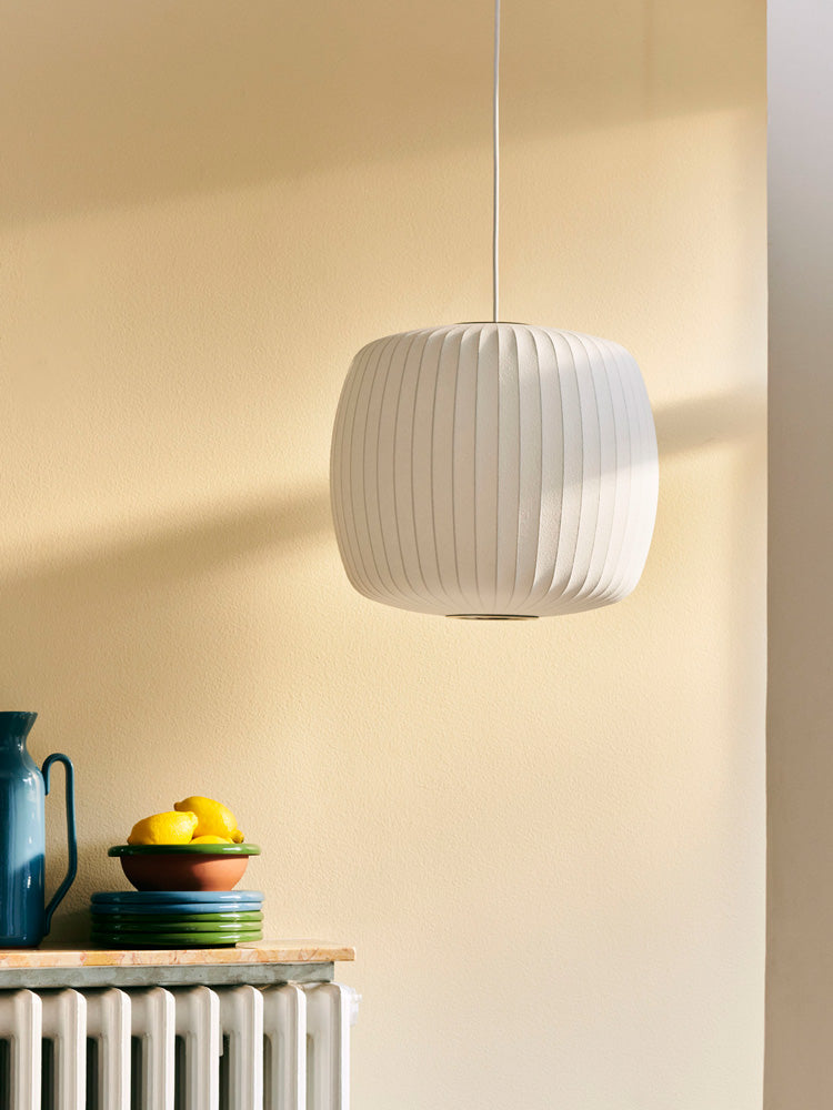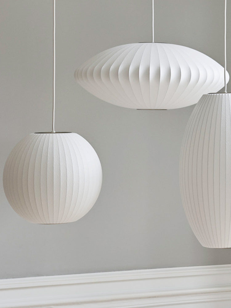 The Nelson light collection is a series of pendant lights created using a metal frame covered with a white webbed polymer. Nelson creates a unique and minimalistic style while producing a soft diffused light. The Nelson Bubble Lamps are perfect for both residential and commercial spaces, creating a dynamic installation with multiple pendants or striking as an individual piece. The diffused light is ideal for living spaces, bedrooms or social areas, the Bubble lights set the ambience and complete an interior design.
