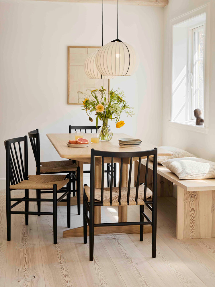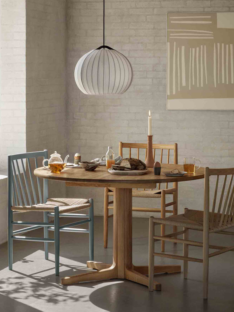 This woven series by the renowned FDB designer Jørgen Bækmark comprises several pieces of furniture, including the classic and iconic J80 dining chair. The chair harks back to the golden age of FDB Møbler in the 1950s and has survived to this day due to its elegant and timeless look. Also available with armrests and functioning as a freestanding chair, the J80 is comfortable to sit in for long periods of time as it is made from quality materials from the paper cord to the solid wood.