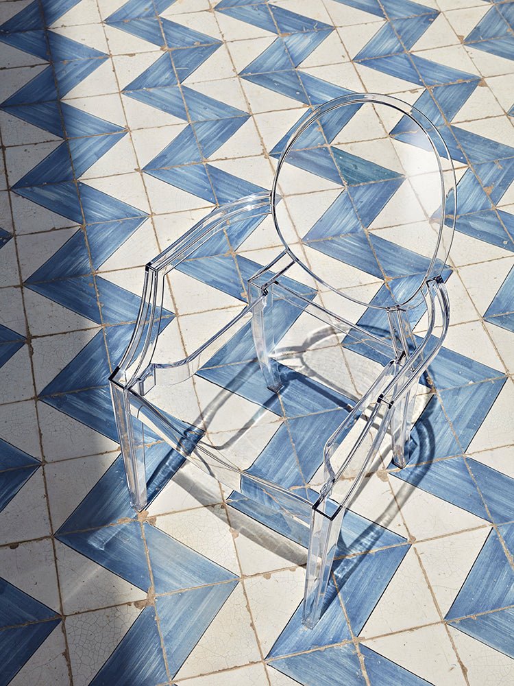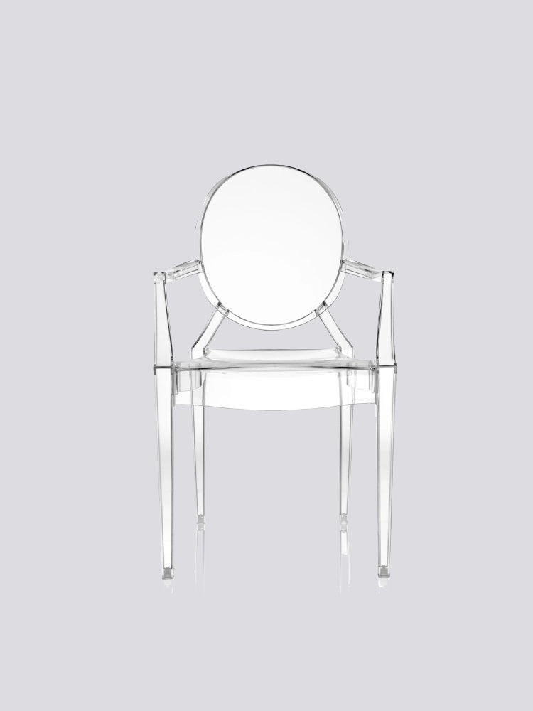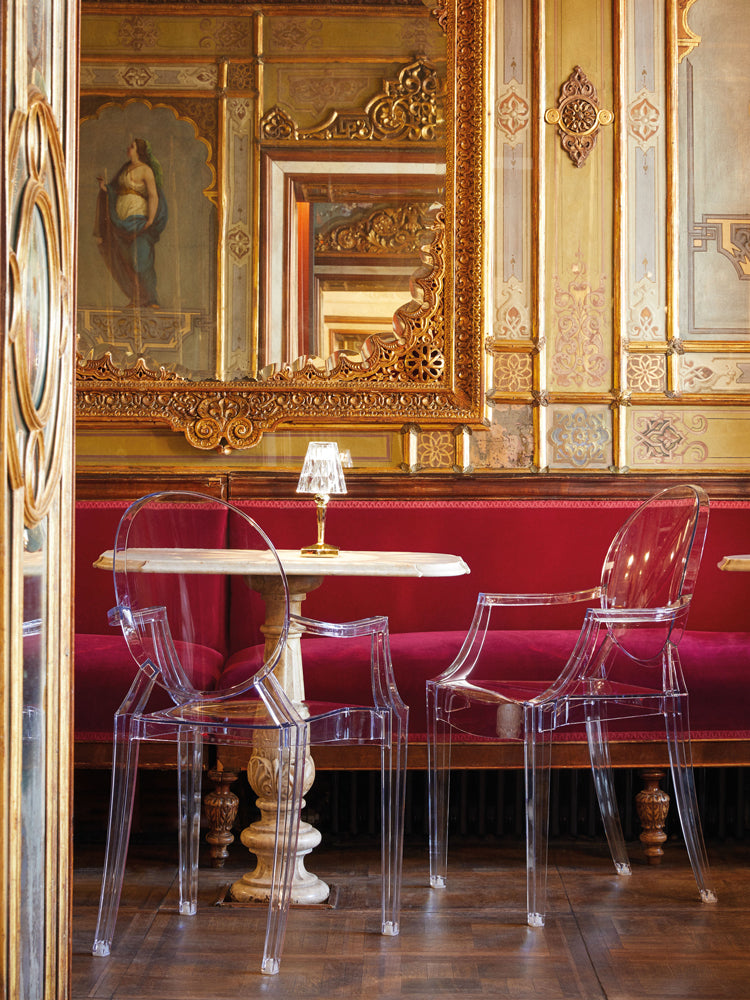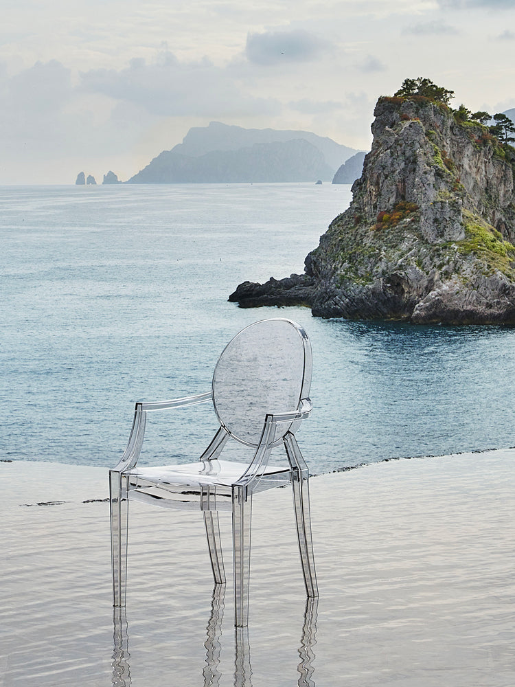 Louis Ghost is the world’s bravest example of the injection of polycarbonate in a single mould. A chair inspired by the Louis XV chair, the baroque ideotype, reinterpreted by Philippe Starck to amaze, inspire and beguile. Despite its evanescent and crystalline image, Louis Ghost is stable and strong, collision-proof and capable of withstanding the effects of the weather; and it can be stacked in piles of up to six. A very charismatic product with enormous aesthetic appeal, perfect for every setting, be it domestic or professional.