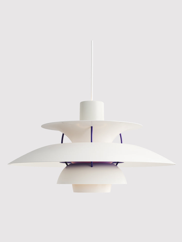 The PH5 pendant provides soft lighting to any space. PH 5 pendant is designed on the principle of a reflecting multi-shade system creating harmonious and glare-free lighting. The shade design is based on a logarithmic spiral with the centre of the light source placed in the spiral's focal point. The PH 5 is available in a multitude of finishes and comes in two sizes.