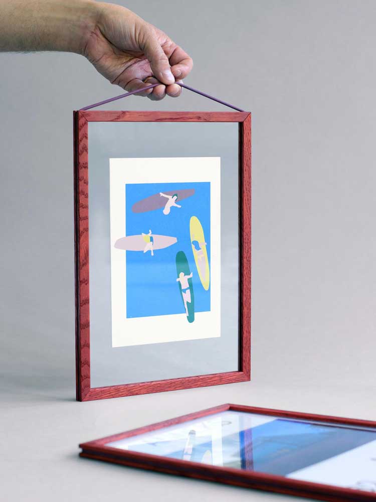 Standing Frame comprises two pieces of acrylic glass, four sides, and a rubber band. Suspend photos, flowers, or prints between the transparent glass, or fill out the entire frame. It's up to you.