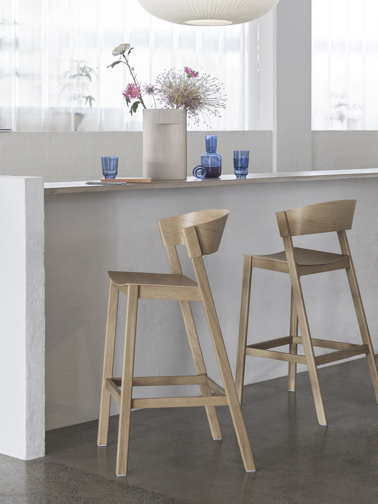 With its curved backrest that folds elegantly around its back legs and ties the design together, the Cover Bar Stool challenges the possibilities of veneer through a forward-thinking approach, echoing the ideas of Scandinavian design. The design is lightweight and features a tall, enveloping back for extensive comfort that allows one to be seated in its seat for hours on end, be it for a dinner, a drink or even working at a counter desk.