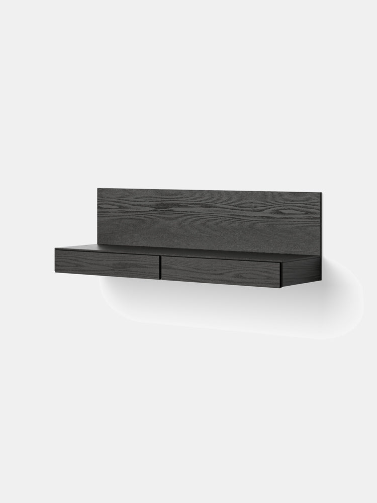 Tana is a series of wall-mounted furniture pieces designed by architect Rikke Rützou Arnved. What they all have in common is a simple expression that is neither disturbed by handles nor suspensions, but where straight lines and clean surfaces are allowed to stand in their undisturbed form. Tana consists in its cornerstone of surfaces in wood that find each other in an effortless encounter. The horizontal surface creates a ledge for objects, while its vertical surface frames and forms a calm, coherent background for what you place on the furniture.