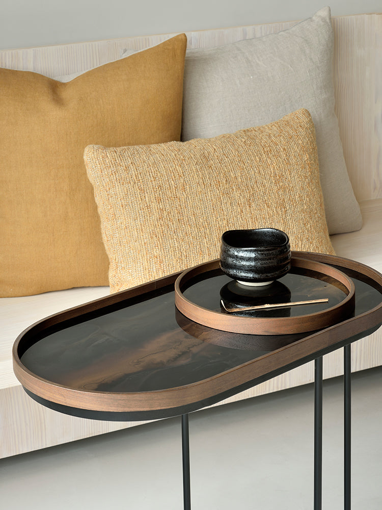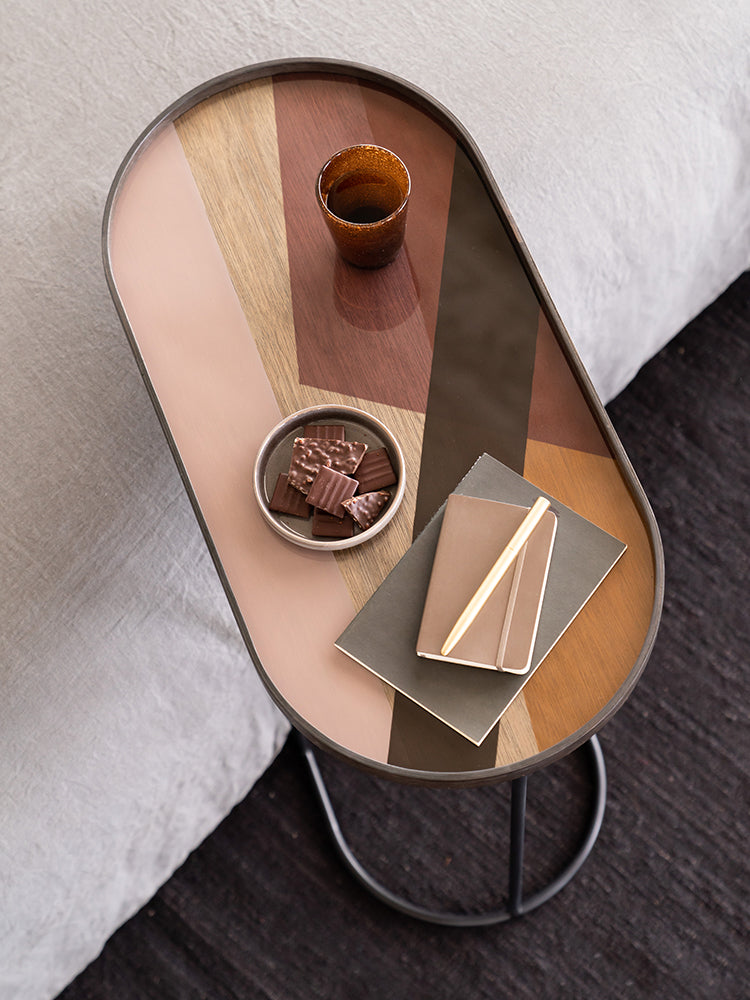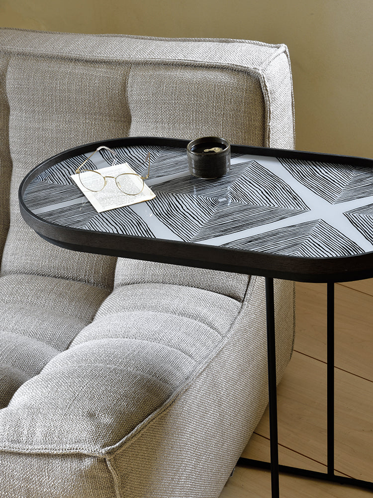 A subdued colour palette meets captivating motifs inspired by nature and travel. These sit lovely on the Oblong Tray Table .