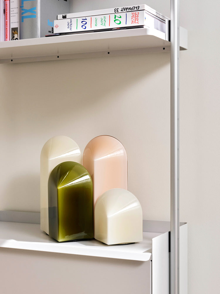 Parade Table Lamp is a sculptural lamp with a distinctive geometric shape that changes the lamp’s expression whichever angle it is turned. Comprising a square base and arched top in coloured glass, it features a custom, integrated LED light source with an inline step-dimmer. Carefully selected sizes and colours complement each other in height and tone, making the lights equally appealing as a group, a single lamp, or as a decorative ornament without the light switched on.