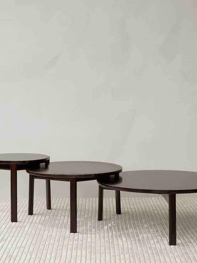 Whether playing host to drinks or home to the remote control or of-the-moment reads, the versatile Passage Lounge Table brings a feeling of soft serenity to spaces thanks to its calming round shape and solid wood construction. Offered in lacquered walnut or FSC™-certified oak, each piece displays unique grain patterns inherent to the high-quality hardwoods. Cleverly designed as a flatpack, self-assembly kit, inviting you to engage with the design, it is offered in three sizes, allowing you to pair multiples together in a nest-like formation.