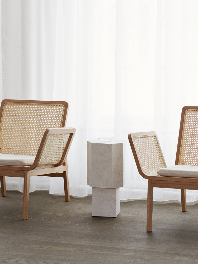 Inspired by the natural crystal shape of the quartz stone, Quartz changes its appearance when seen from different angles. Owing to the raw materiality of hand-painted reinforced fiber concrete, the surface of Quartz has a unique and tactile texture.