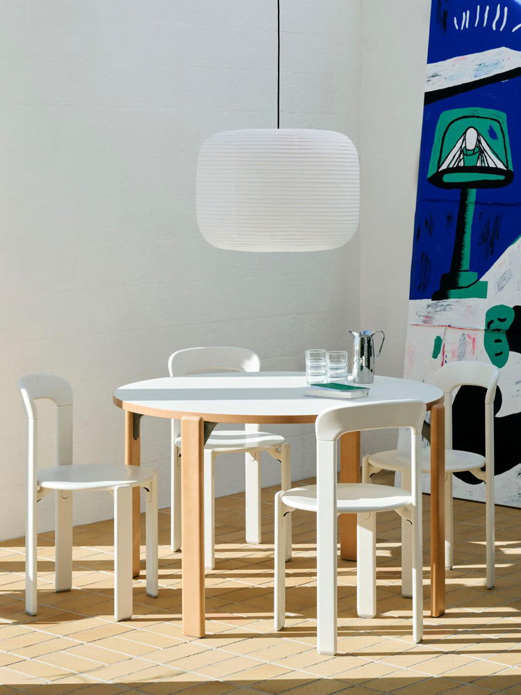 Based on the original Rey Collection designed by Swiss designer Bruno Rey in 1971, HAY has teamed up with Dietiker to relaunch the Rey Table. Centred around the shared language of rounded edges and robust connections, the acclaimed design combines cast aluminium brackets with wooden parts, creating a timeless and versatile table for domestic, public, or corporate settings. Updated with new dimensions to suit contemporary lifestyle needs, it is available in both original colours and new tones selected by HAY.