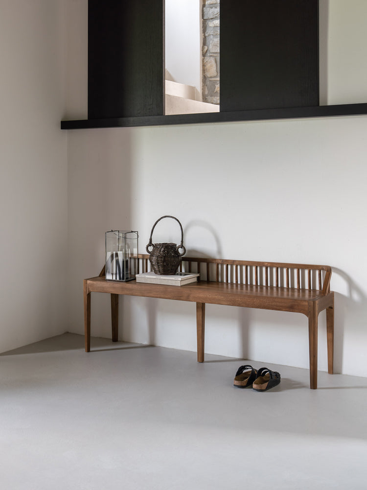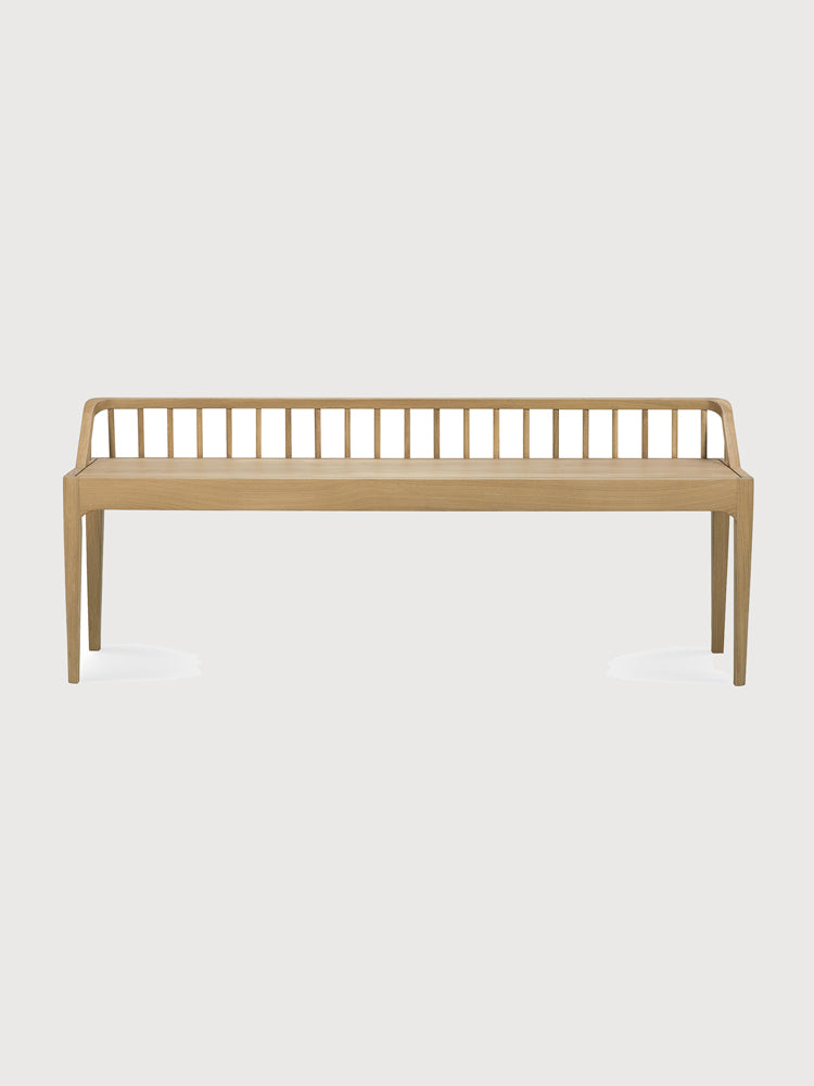 The Spindle collection found its inspiration in the traditional spinning wheel and incorporates perfectly aligned spokes into the backseat. Wherever you choose to place it, the Spindle bench is a striking piece.