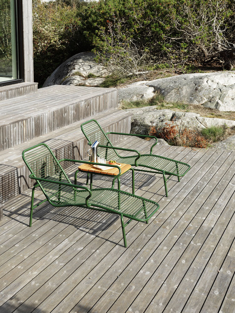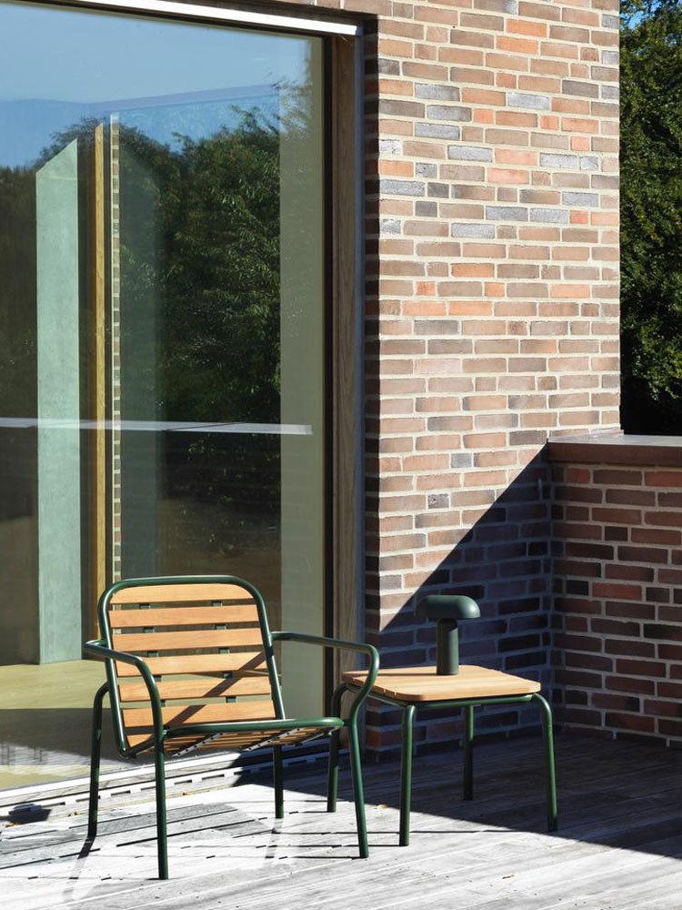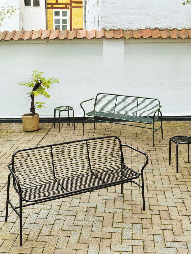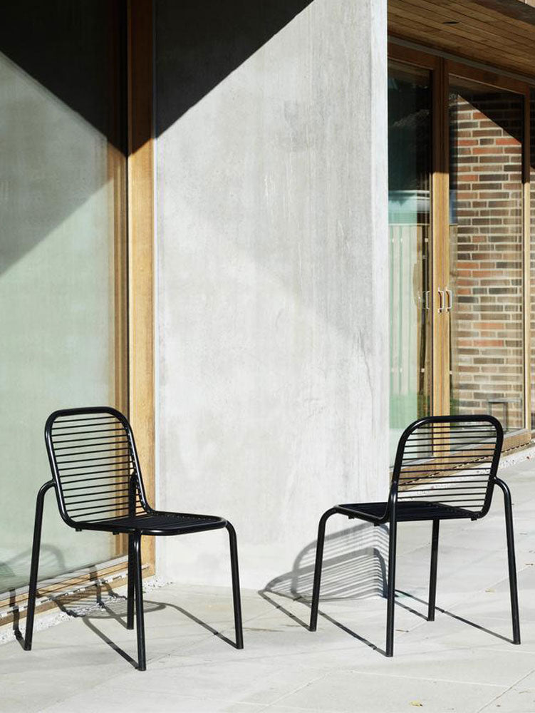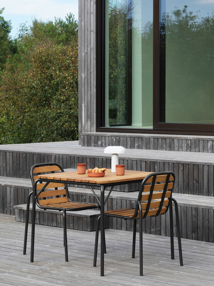 Vig is a collection of outdoor furniture by Normann Copenhagen in a timeless and functional design, made from a double powder coated steel to withstand the wear and tear of outside use.