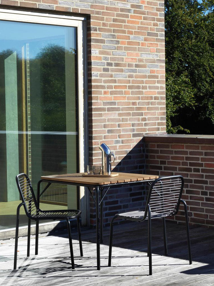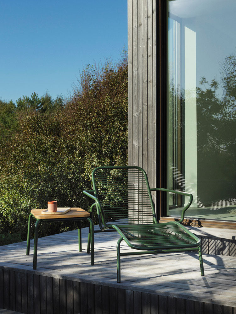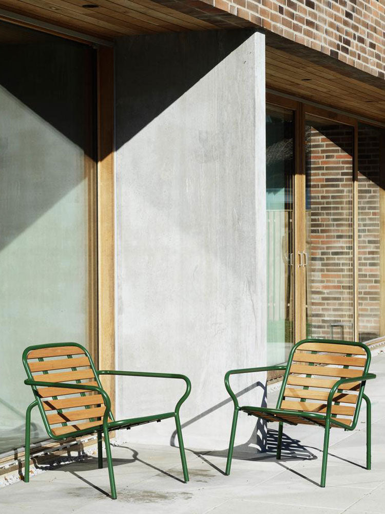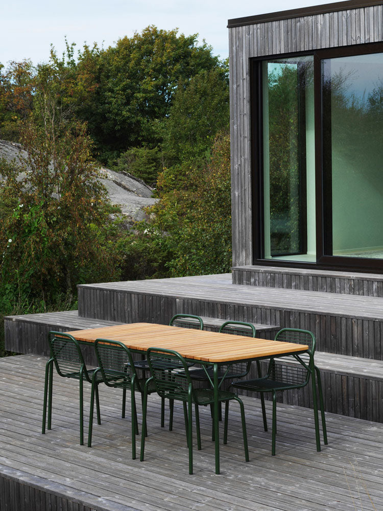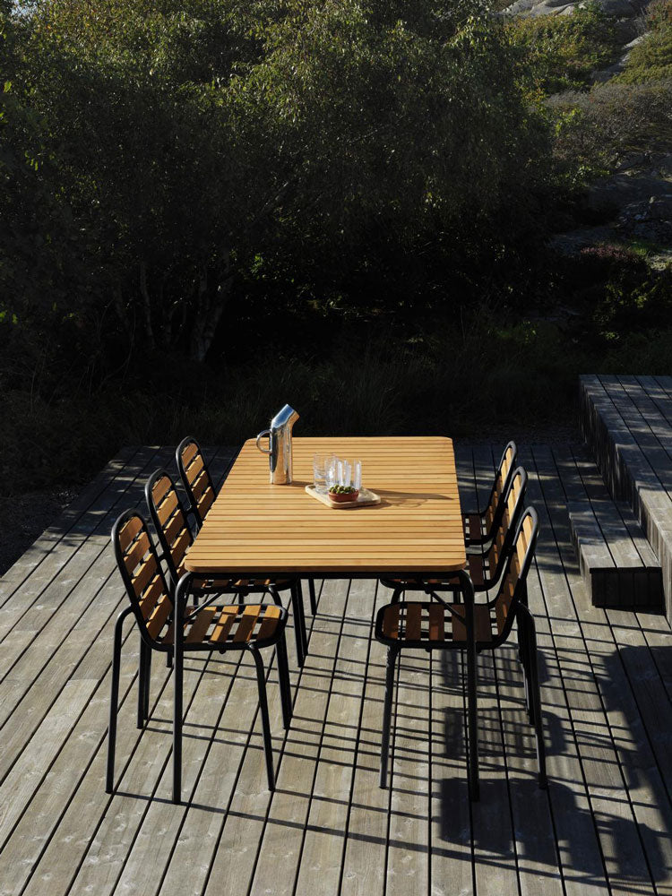 Vig is a collection of outdoor furniture by Normann Copenhagen in a timeless and functional design, made from a double powder coated steel to withstand the wear and tear of outside use.